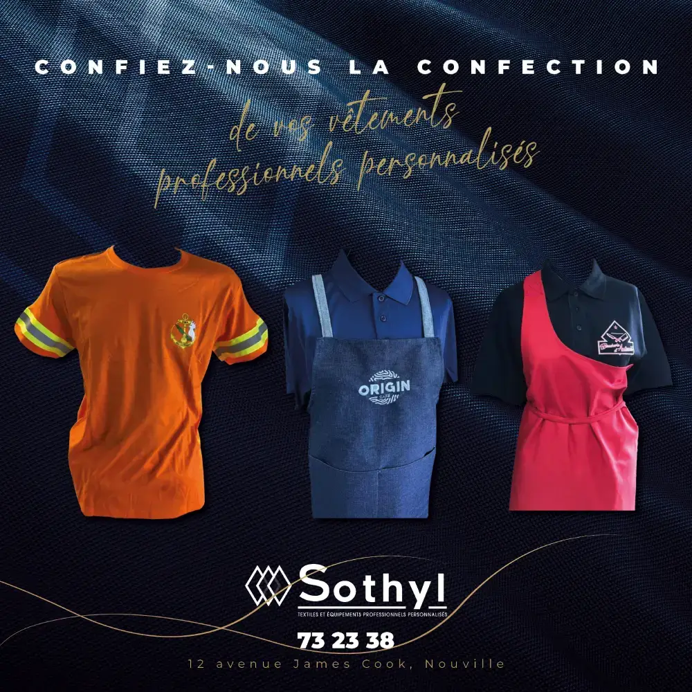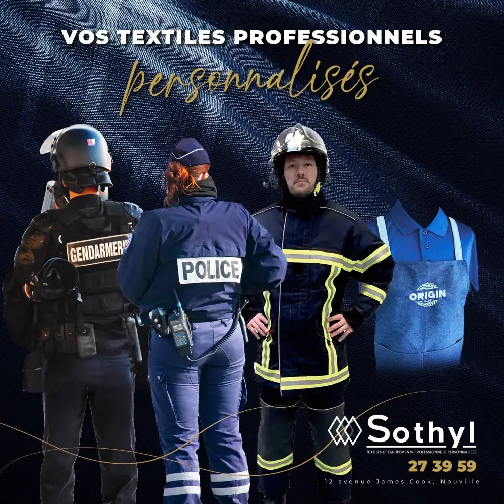 Sothyl est spécialisée dans la confection textile personnalisée pour institutions, collectivités et professionnels. Nous réalisons des vêtements de travail et des uniformes personnalisés selon les usages métiers et spécificités de chaque activité. Notre approche allie confort, durabilité et identité visuelle, avec des finitions et broderies entièrement personnalisables.