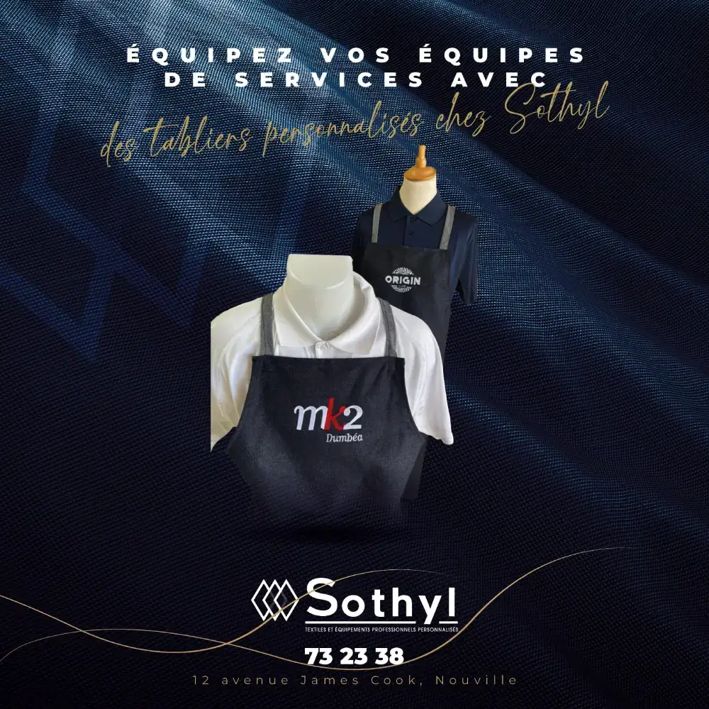 Sothyl assure une chaîne textile rigoureuse, de la sélection des matières premières à la confection finale. Spécialisés dans les vêtements professionnels personnalisés et les uniformes personnalisés, nous conjuguons expertise artisanale locale et méthodes de fabrication conformes aux standards des secteurs les plus exigeants. Chaque pièce, chemise, polo, tablier ou pantalon, allie résistance, confort et conformité réglementaire.